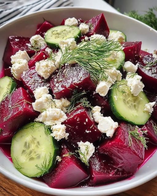 Here’s a fresh and simple recipe for Beet Salad with Feta, Cucumbers, and Dill β€” perfect for summer or as a light side dish!