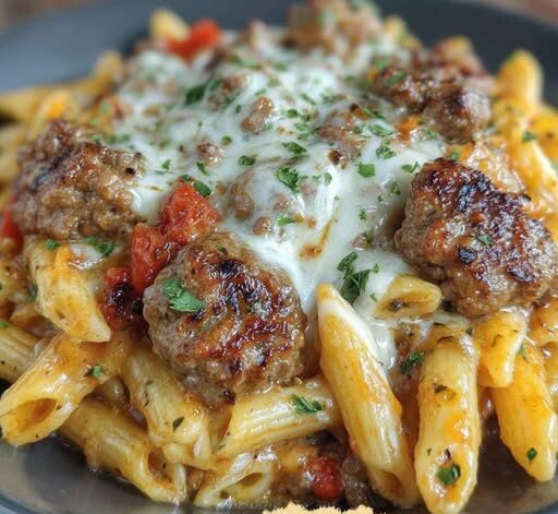 🧄🧀 Cheesy Penne with Garlic Butter Ground Beef