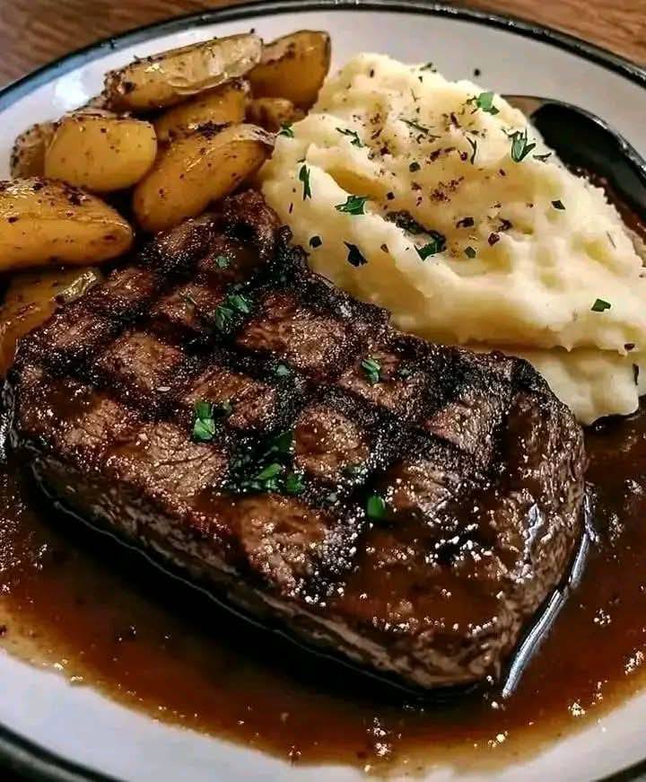 Enjoy your classic steak and mashed potatoes! It’s a simple but indulgent meal that’s sure to satisfy.