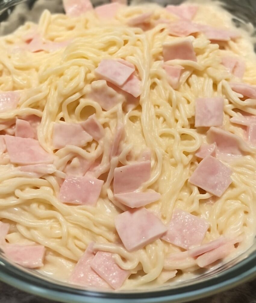 Here’s a simple and delicious recipe for Creamy White Spaghetti with Ham—a comforting pasta dish that combines tender spaghetti, savory ham, and a rich white sauce. Perfect for a quick dinner or a cozy lunch.