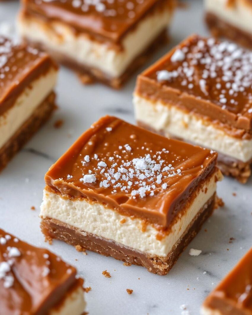Here’s a mouthwatering recipe for Salted Caramel Cheesecake Bars that combines a rich, creamy cheesecake layer with a sweet and salty caramel topping. These bars are sure to impress!