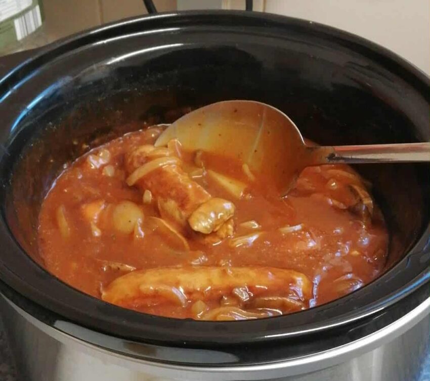 - Cover the casserole with a lid or foil and bake for 40-45 minutes, until sausages are cooked through and veggies are tender.