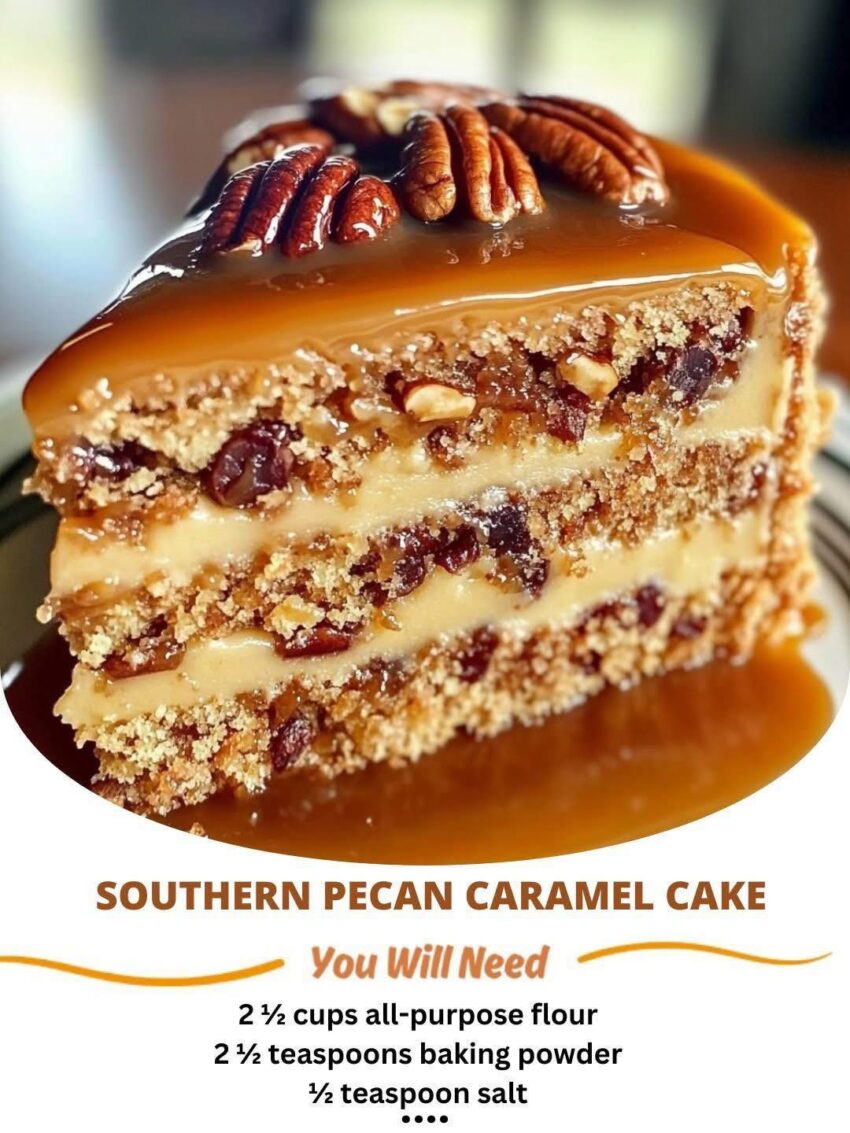 Here it is — a Southern classic you won’t want to lose! This Southern Pecan Cake with Caramel Glaze is rich, buttery, and filled with crunchy toasted pecans, all draped in a warm, velvety caramel glaze. It’s perfect for holidays, Sunday dinners, or when you need a taste of home. 🌰✨