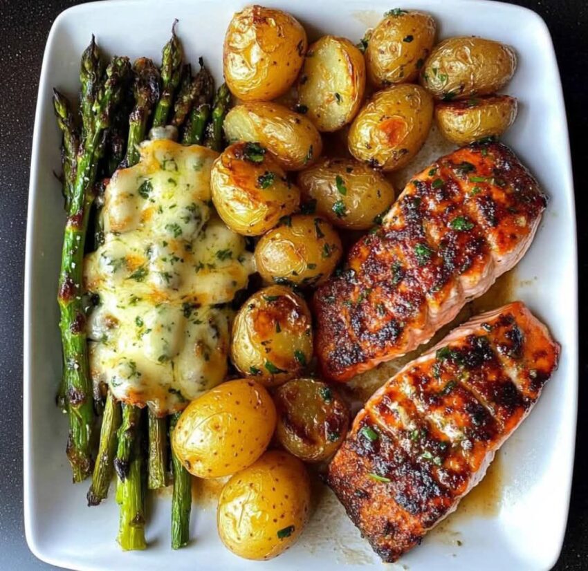 Here’s a full recipe for Spiced Salmon with Cheesy Asparagus & Garlic Herb Potatoes — packed with flavor, balanced, and perfect for a satisfying dinner.