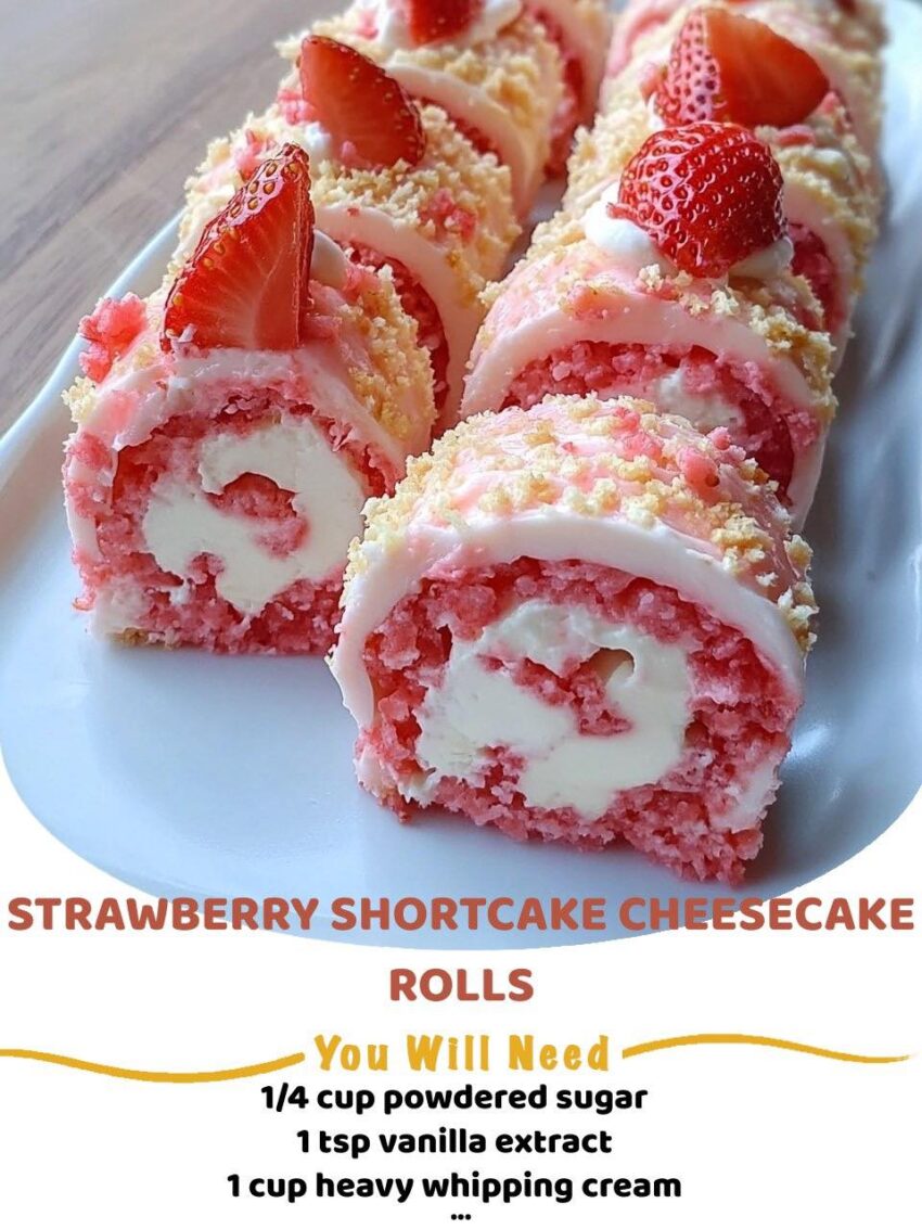 Hereβs a dreamy, no-bake recipe for Strawberry Shortcake Cheesecake Rolls β the perfect blend of creamy cheesecake, fresh strawberries, and that nostalgic shortcake crunch. No oven, no stress β just pure dessert bliss!
