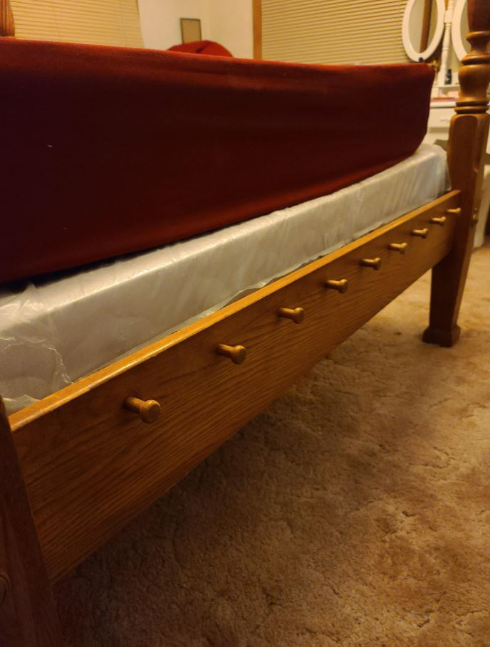 Those pegs at the end of your bed are likely part of a Shaker-style or antique storage bed design, and while they can be used for shoes, they’re traditionally intended for hanging clothing, bags, or accessories—especially items you’d wear or grab daily.