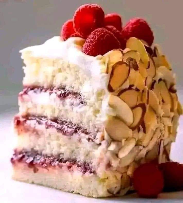 White Chocolate Almond Raspberry Cake a moist, tender almond cake layered with fresh raspberries and creamy white chocolate frosting. It’s elegant enough for a celebration but easy enough for a weekend bake.